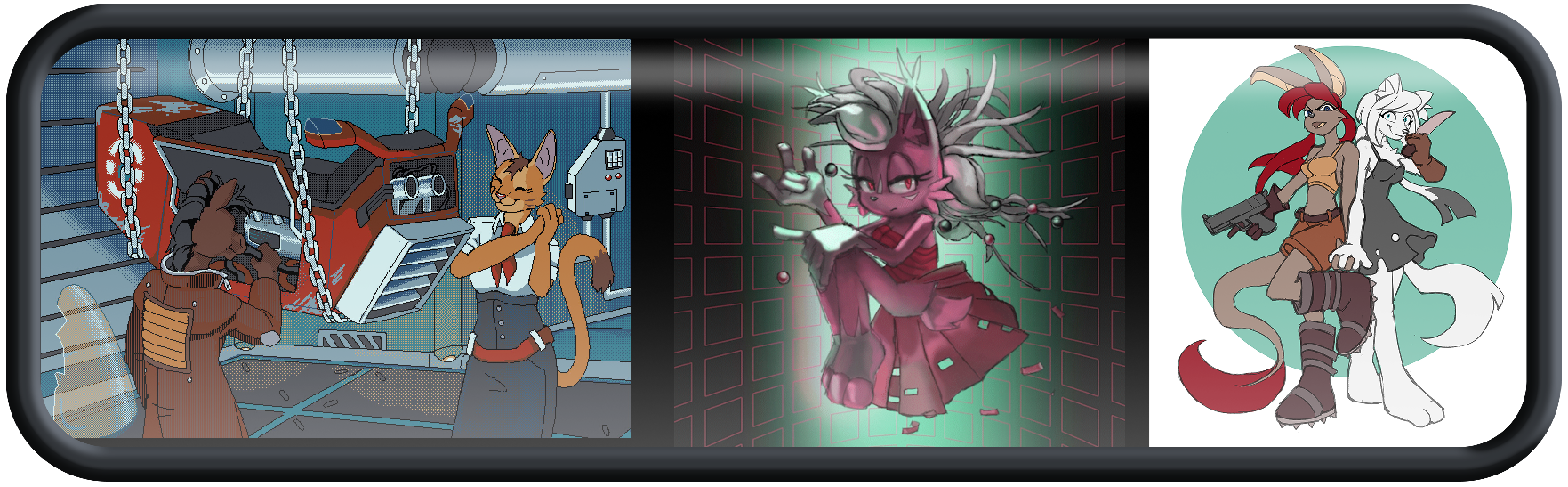 < (Art I've made of my OCs and their world.)